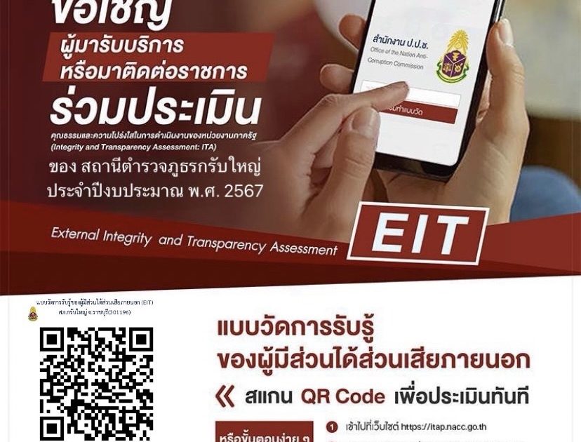 ขอเชิญผู้มารับบริการหรือมาติดต่อราชการร่วมประเมินคุณธรรมและความโปร่งใสในการดำเนินงานของหน่วยงานภาครัฐ (Integrity and Transparency Assessment : ITA) ประจำปีงบประมาณ พ.ศ. 2567 ของสถานีตำรวจภูธรบ้านคา ประจำปีงบประมาณ พ.ศ. 2567