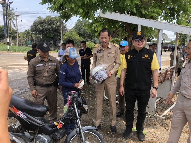 จัดกิจกรรมจิตอาสามอบหมวกนิรภัยตามโครงการจิตอาสา(จราจร)รณรงค์การขับขี่ปลอดภัยสวมหมวกนิรภัยเพื่อลดอุบัติเหตุจราจรทางถนน ในช่วงเทศกาลสงกรานต์ พ.ศ.๒๕๖๘