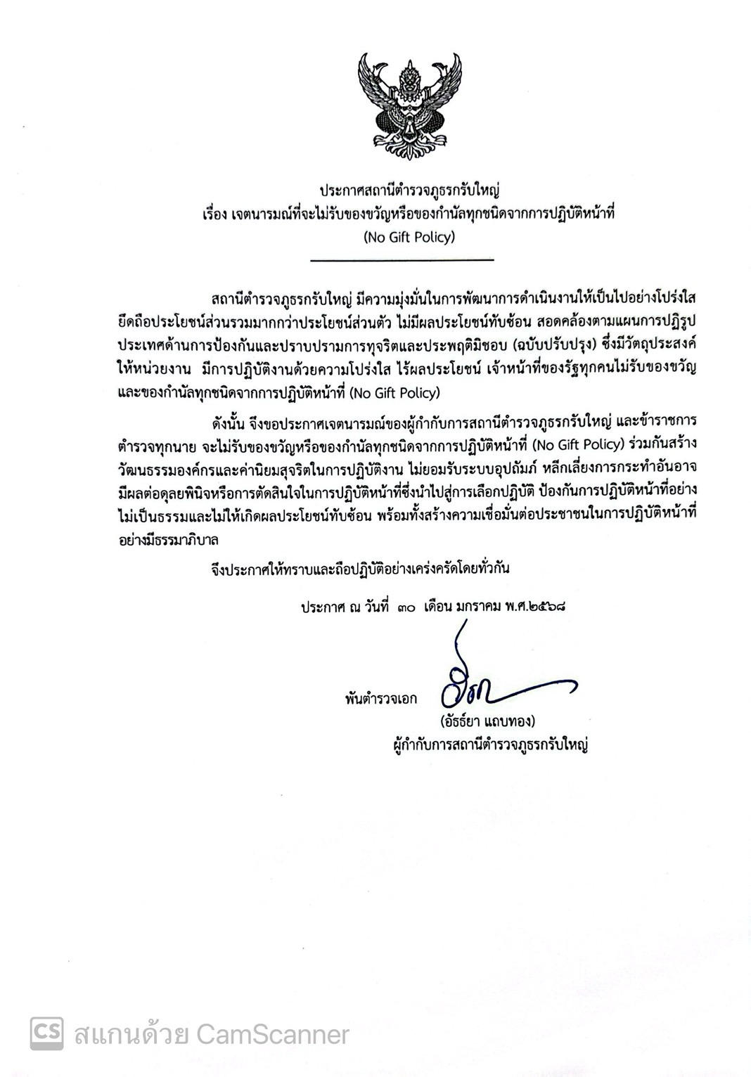 สถานีตำรวจภูธรกรับใหญ่ : พ.ต.ท.ภาณุพงศ์ วัฒนพร รอง ผกก.ป.สภ.กรับใหญ่ ได้จัดทำสื่อประชาสัมพันธ์เตือนภ