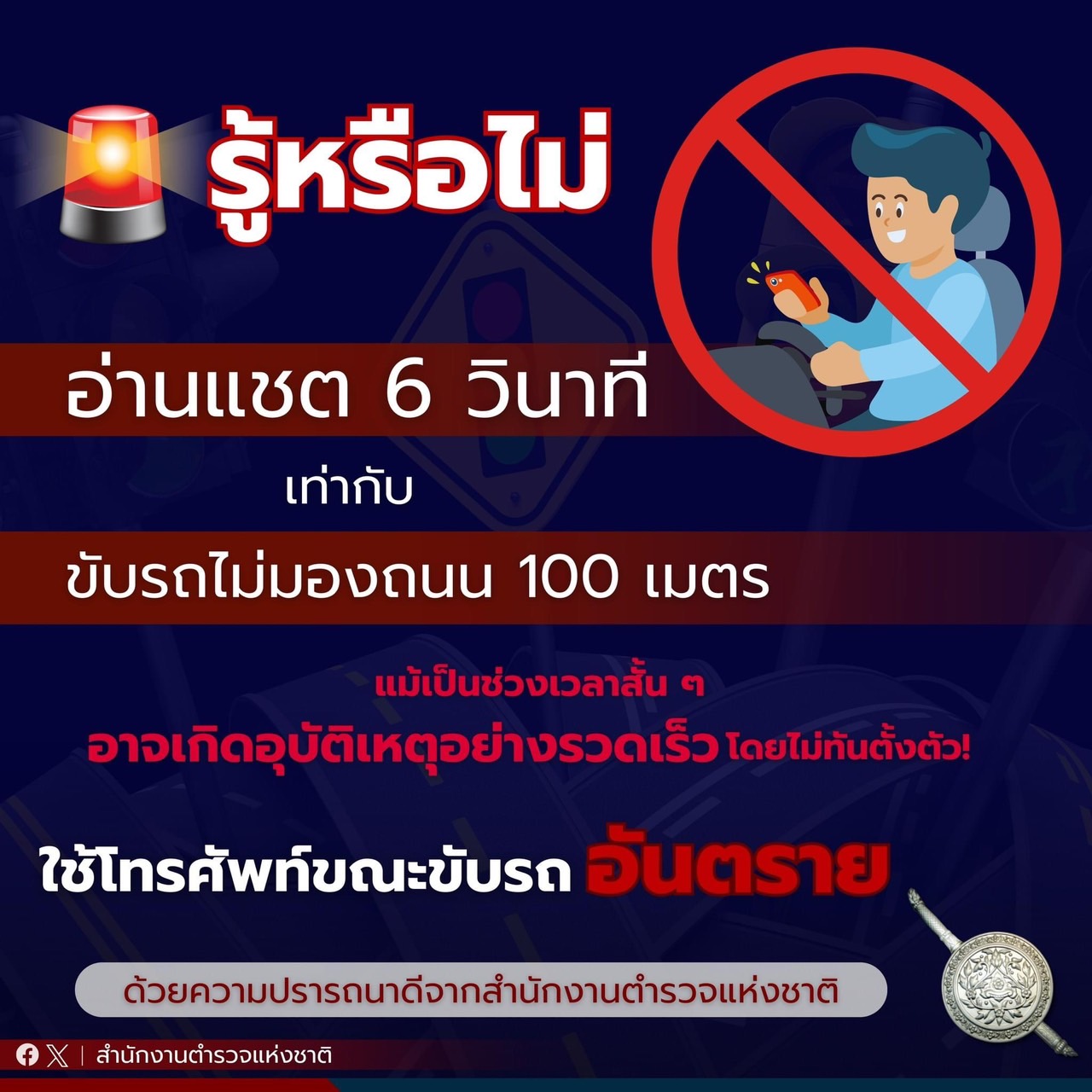 🚨รู้หรือไม่ ทุกครั้งที่ท่านใช้โทรศัพท์มือถือระหว่างขับรถ มีความเสี่ยงเกิดอุบัติเหตุ ทุกครั้งที่อ่านแ