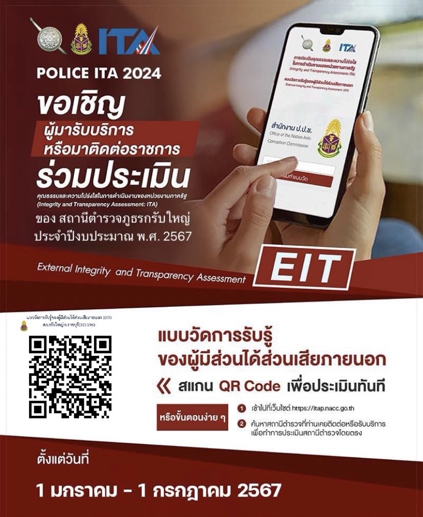 ขอเชิญผู้มารับบริการหรือมาติดต่อราชการร่วมประเมินคุณธรรมและความโปร่งใสในการดำเนินงานของหน่วยงานภาครั