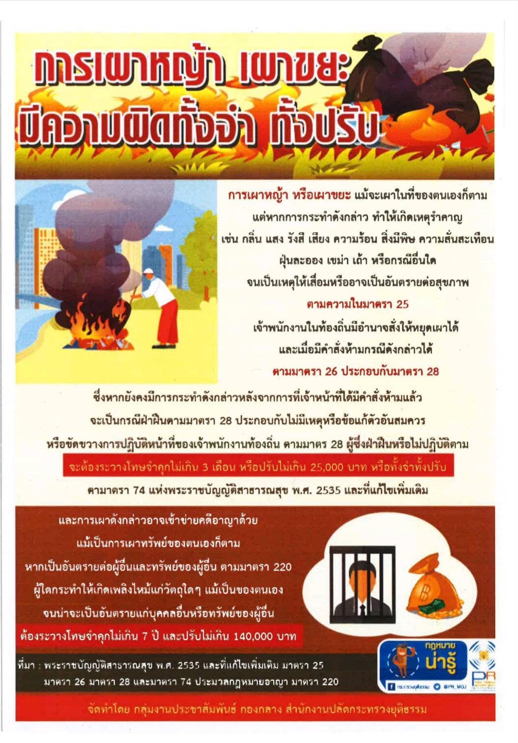 สถานีตำรวจภูธรกรับใหญ่ ขอประชาสัมพันธ์กฏหมายน่ารู้ เกี่ยวกับความผิดในการเผาหญ้า เผาขยะ