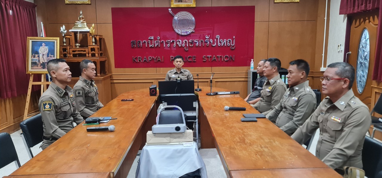 วันที่ 12 กุมภาพันธ์ 2568 เวลา 10.30 น. พ.ต.อ. อัธธ์ยา แถบทอง ผกก.สภ.กรับใหญ่ ประชุมหัวหน้างานแต่ละส
