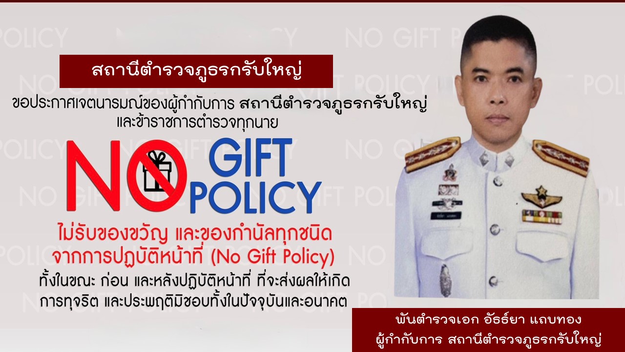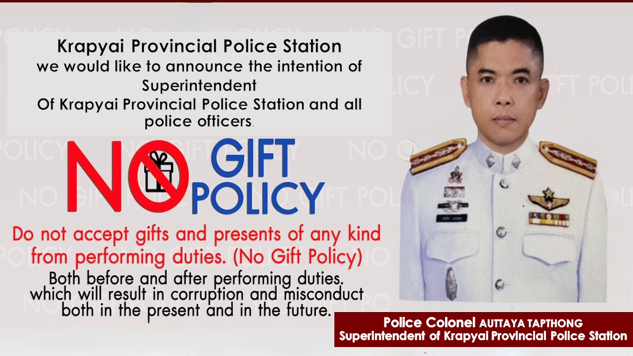 - ประกาศสำนักงานยุทธศาสตร์ตำรวจเรื่องเจตนารมณ์ที่จะไม่รับของขวัญหรือของกำนัลทุกชนิดจากการปฏิบัติหน้าที่