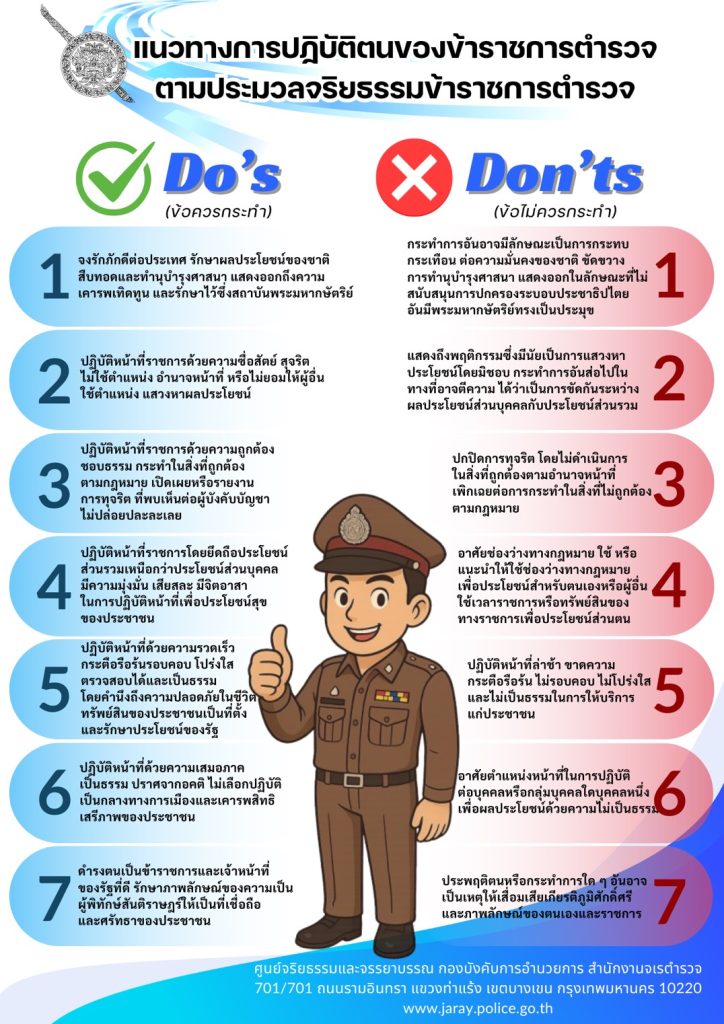 - คู่มือเสริมสร้างการปฏิบัติตามประมวลจริยธรรมและจรรยาบรรณของตำรวจ