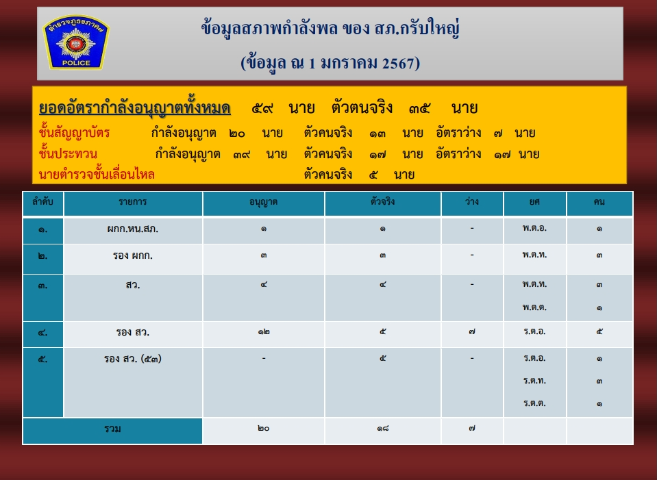 อัตรากำลังของสถานีตำรวจ